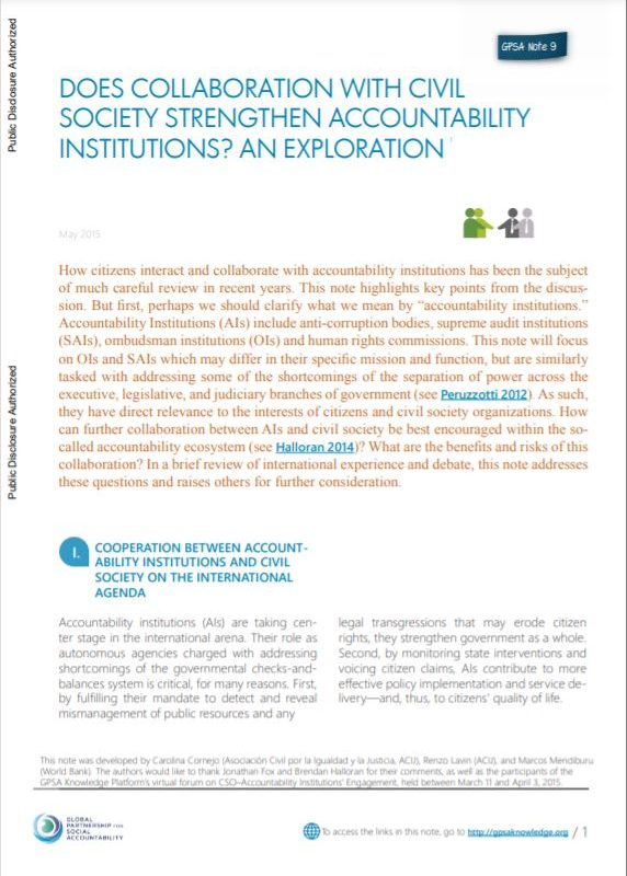 Does collaboration with civil society strengthen accountability institutions? An exploration Does collaboration with civil society strengthen accountability institutions? An exploration