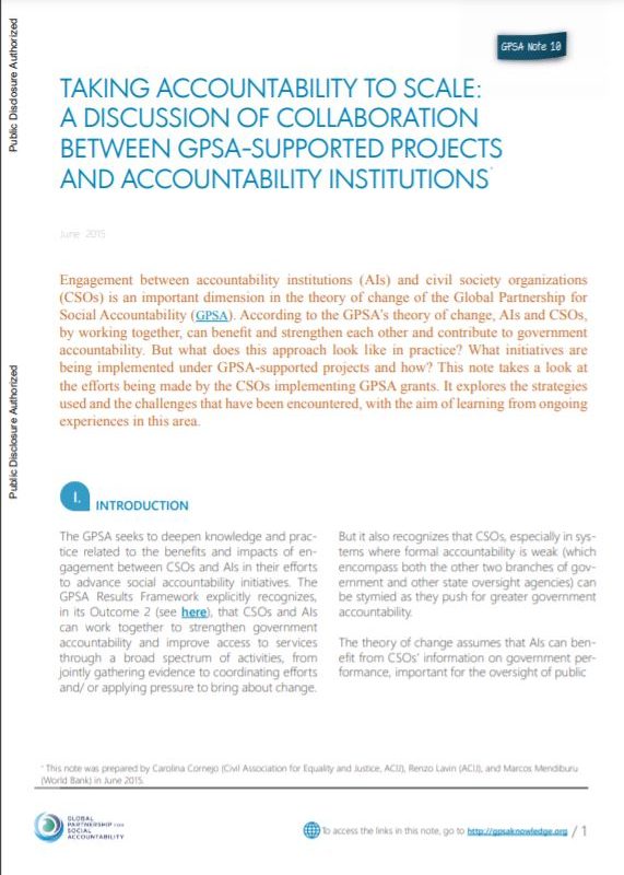 Taking Accountability to Scale: A Discussion of Collaboration Between GPSA-Supported Projects and Accountability Institutions Taking Accountability to Scale: A Discussion of Collaboration Between GPSA-Supported Projects and Accountability Institutions
